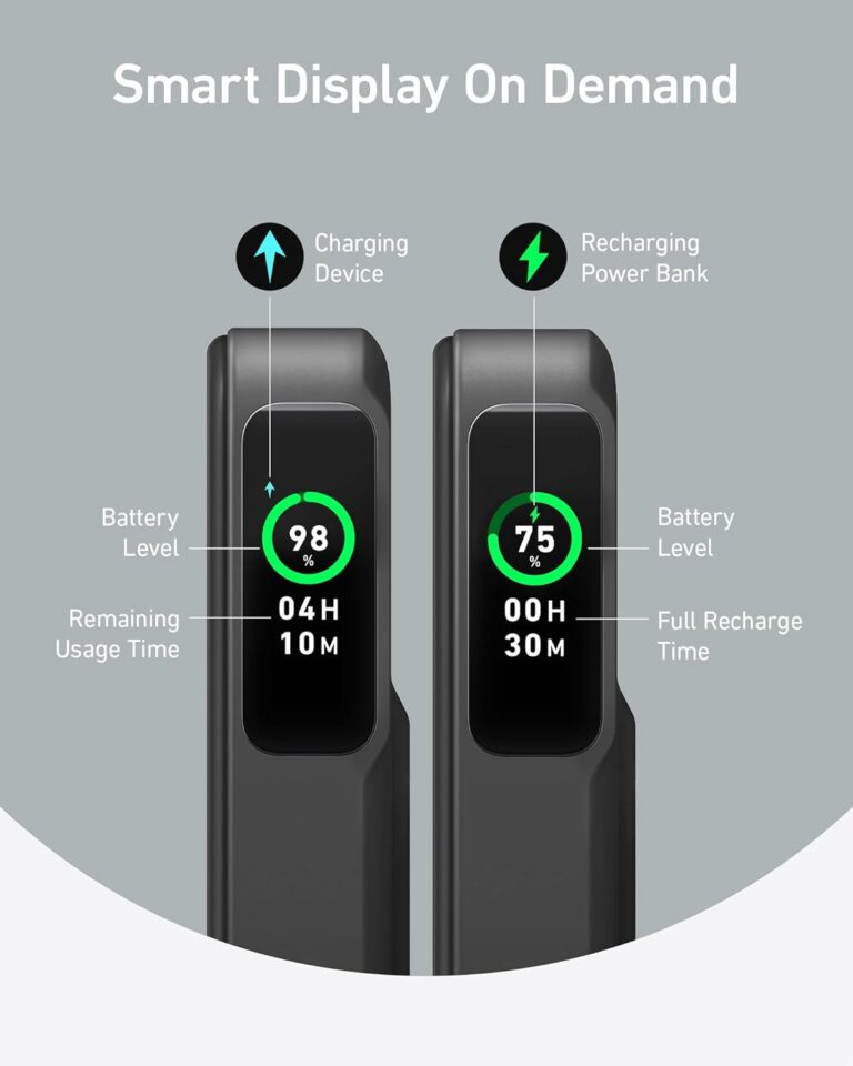 Anker MagGo 10,000mAh 15W Ultra-Fast MagSafe Qi2 Certified Power Bank with Smart Display and Foldable Stand - White