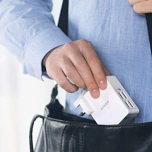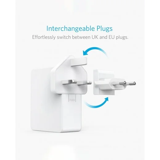 Ideal for travel: Compact design, compatible with international voltages and interchangeable plugs for the UK and Europe make the PowerPort Lite 4 Ports the perfect travel companion.