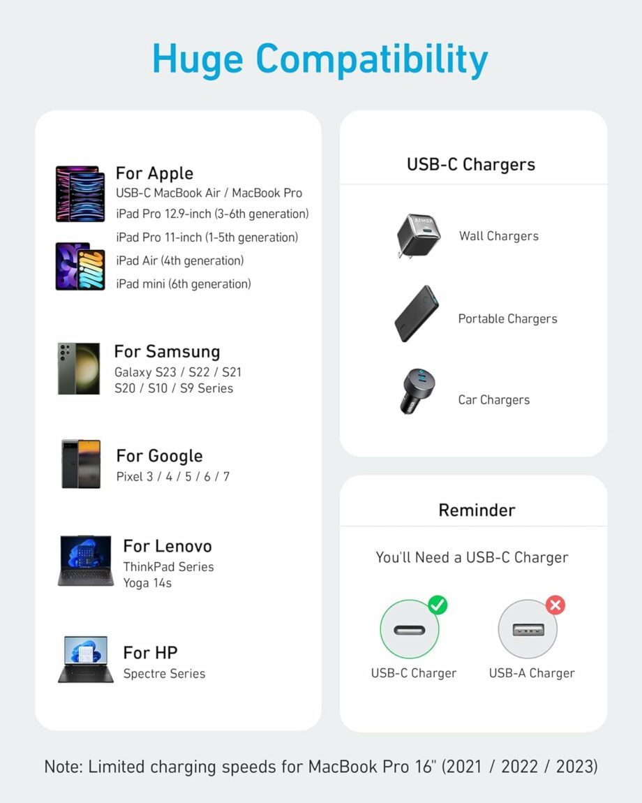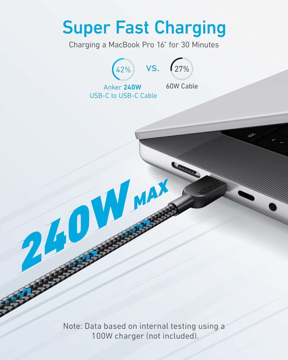 Rapid 240W Charging Speed:Ideal for a wide range of devices, including phones, laptops, and tablets. Charge a MacBook Pro 16″ to 42% in just 30 minutes.