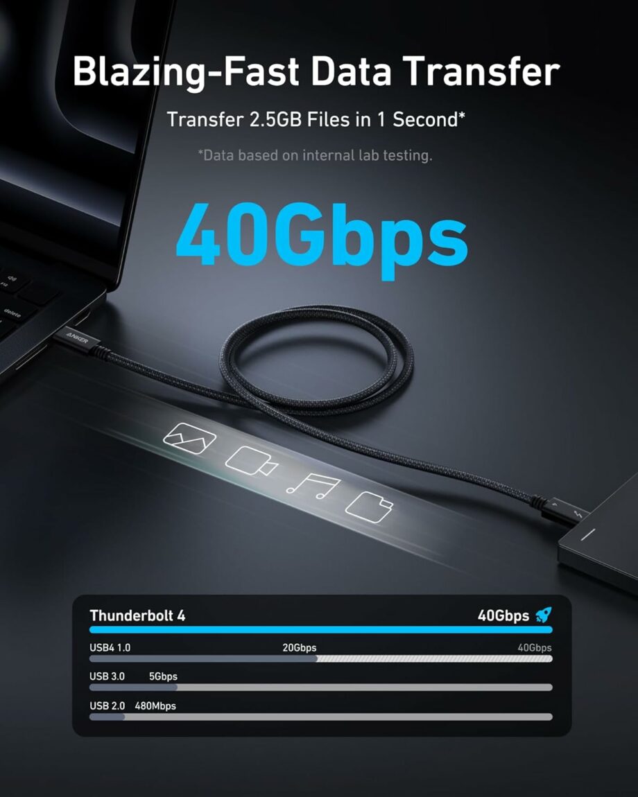 Anker Prime Thunderbolt 4 Cable (3.3 ft, 240W, 40Gbps)