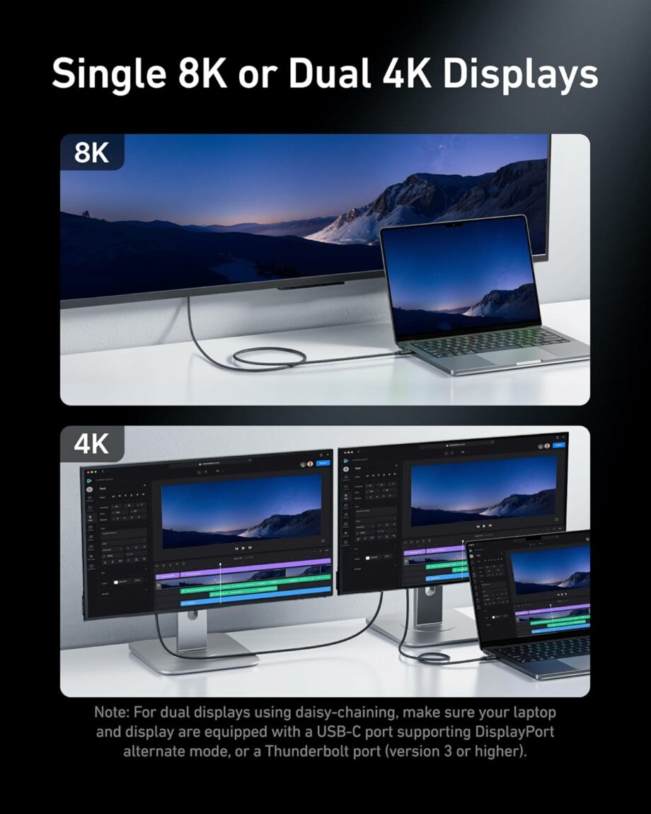 Enhanced Display Capability: Upgrade your visual setup with versatile support for both single 8K and dual 4K displays, enhancing your productivity and entertainment.