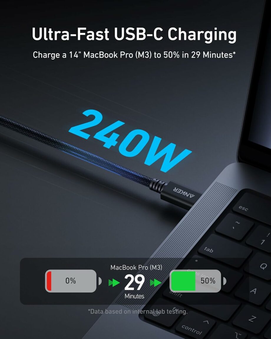 Peak Performance Data and Power: Maximize efficiency with lightning-fast 40Gbps data speeds and powerful 240W USB-C fast charging.