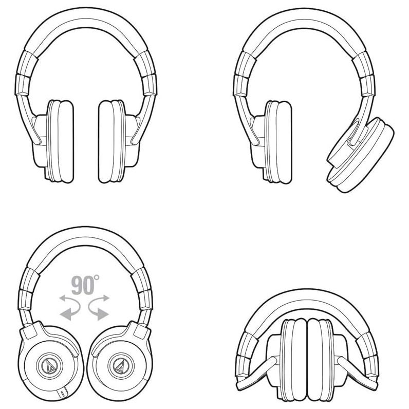 90° swiveling earcups for easy, one-ear monitoring and collapsible for space-saving portability