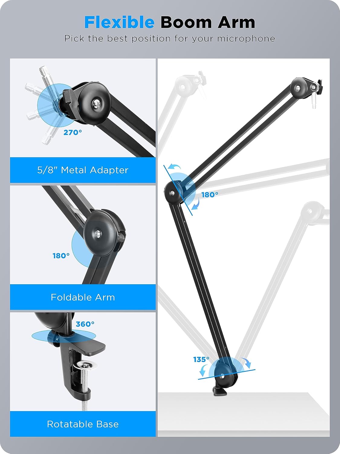 The mic stand adopts a strong thickened metal tube, which can bear more weight than ordinary stands. High-quality coating, scratch-resistant.