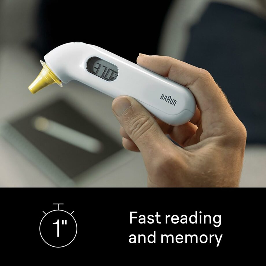 The thermometer is ready to use after two beeps are sounded and the non-flashing ear icon appears.