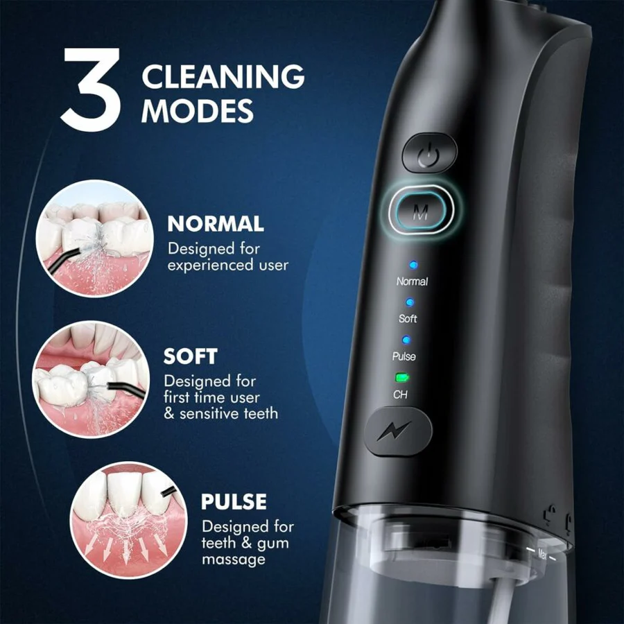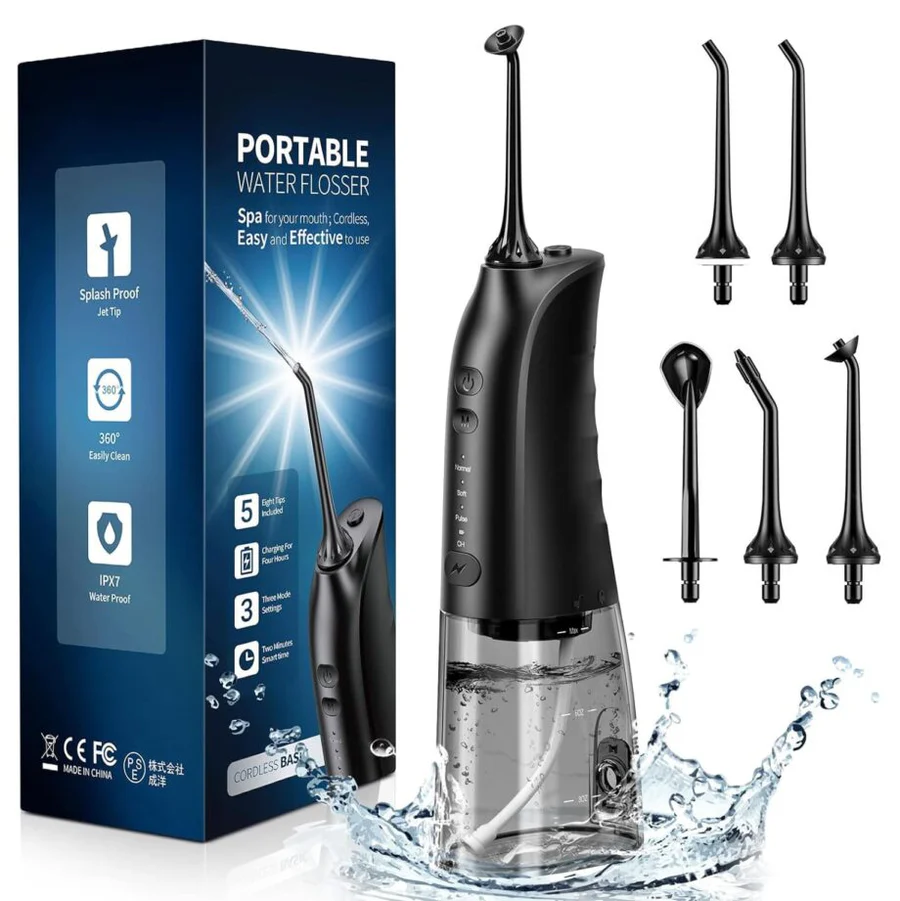 Improve your oral hygiene with the Demita Portable Water Flosser. With 3 modes and 5 tips, this black flosser is perfect for removing plaque and maintaining healthy gums. Easy to use and portable, it’s the perfect addition to your daily routine.