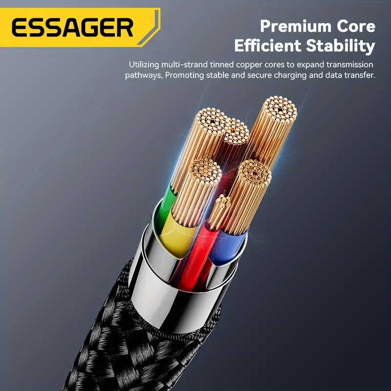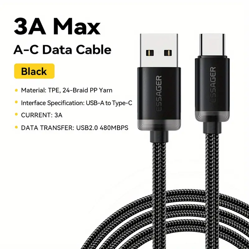 Essager USB A to C Nylon Braided Cable 2M – Black (EXCT-SYA01-P)