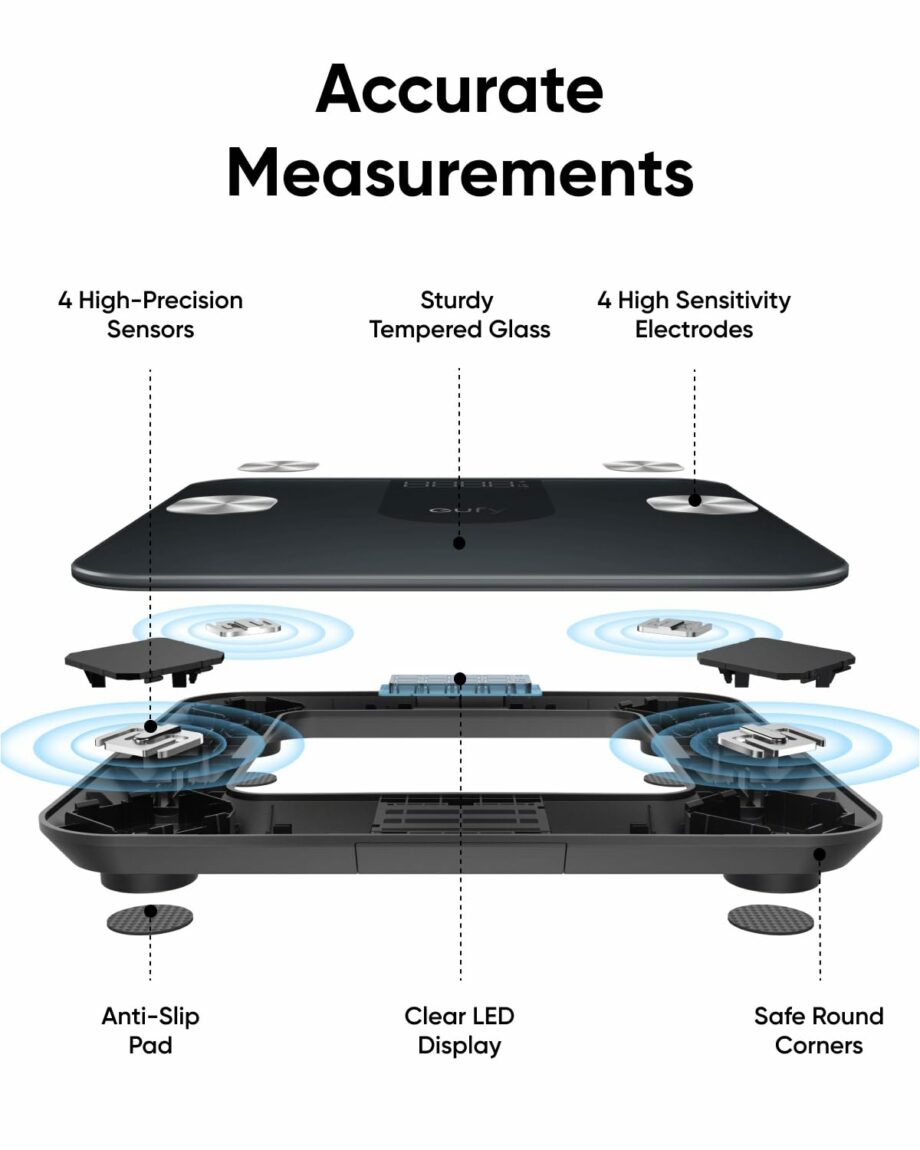 Compact Design: eufy A1 Smart Scale measures just 26 × 26 × 2.5 cm, making it ideal for small spaces. It can easily be stored underneath furniture for further convenience.