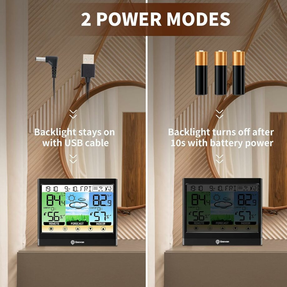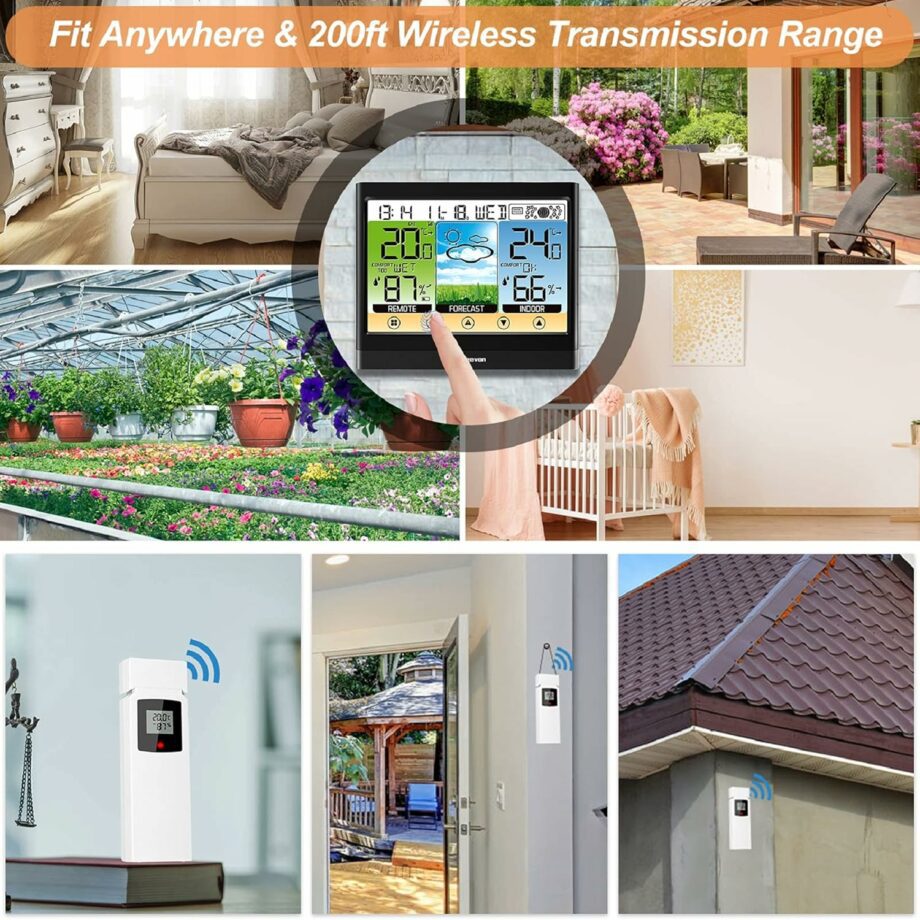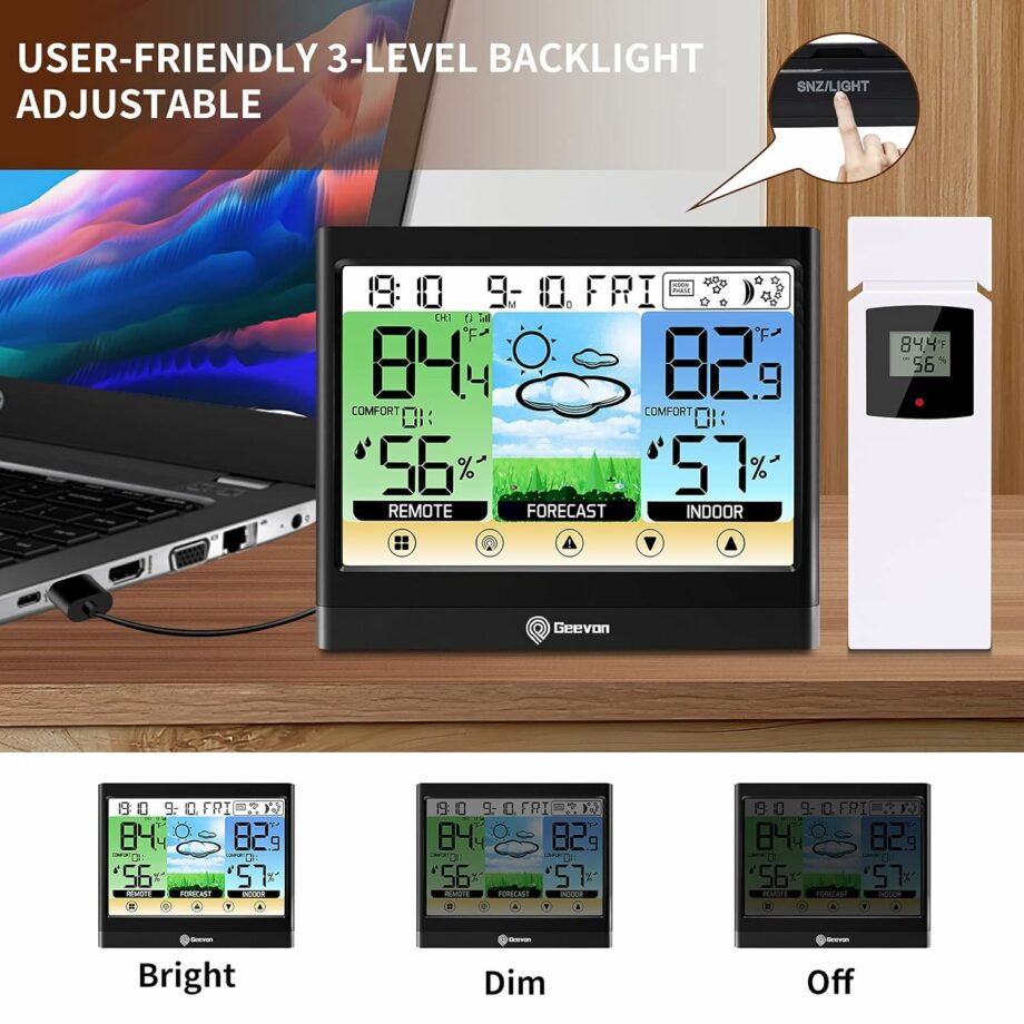 Measuring inside outside temperature & humidity with trends arrows, max/min records and high&low alert settings. Monitoring indoor outdoor comfort level, heat index, dew point, mold risk, all-in-one weather thermometer with adjustable 3-level brightness is an ideal helper for your life.