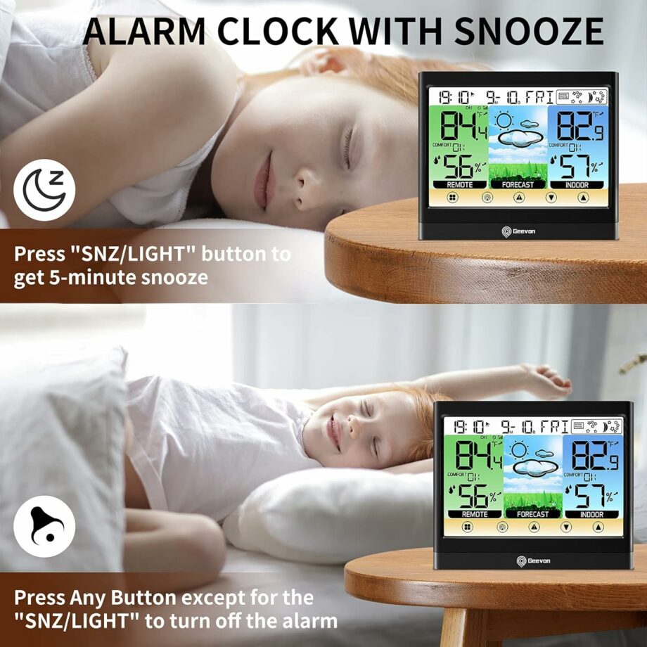Indoor outdoor thermometer is able to set up custom alarm values for high/low temperature and humidity. When conditions exceed your preset values, it will alert you.