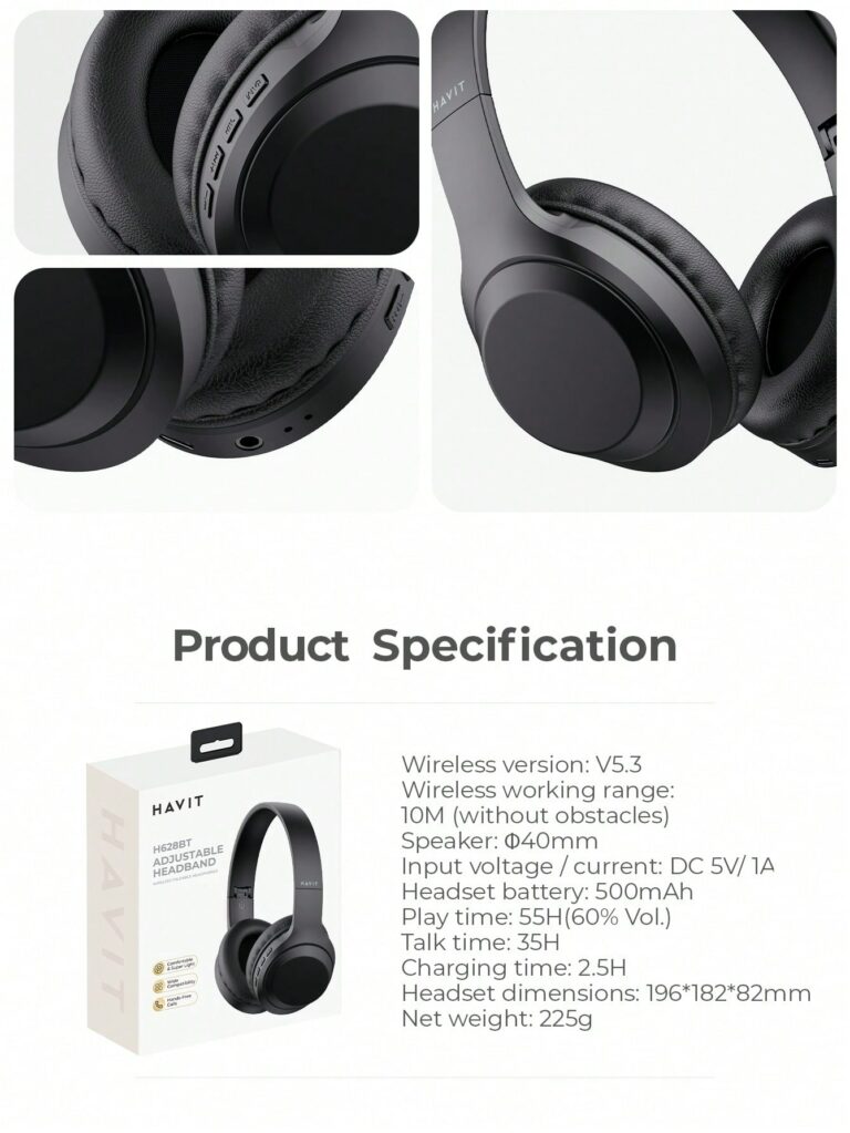 The Havit H628BT Headphone offers wireless freedom with Bluetooth connectivity, delivering clear sound and comfortable design for everyday listening and on-the-go convenience.