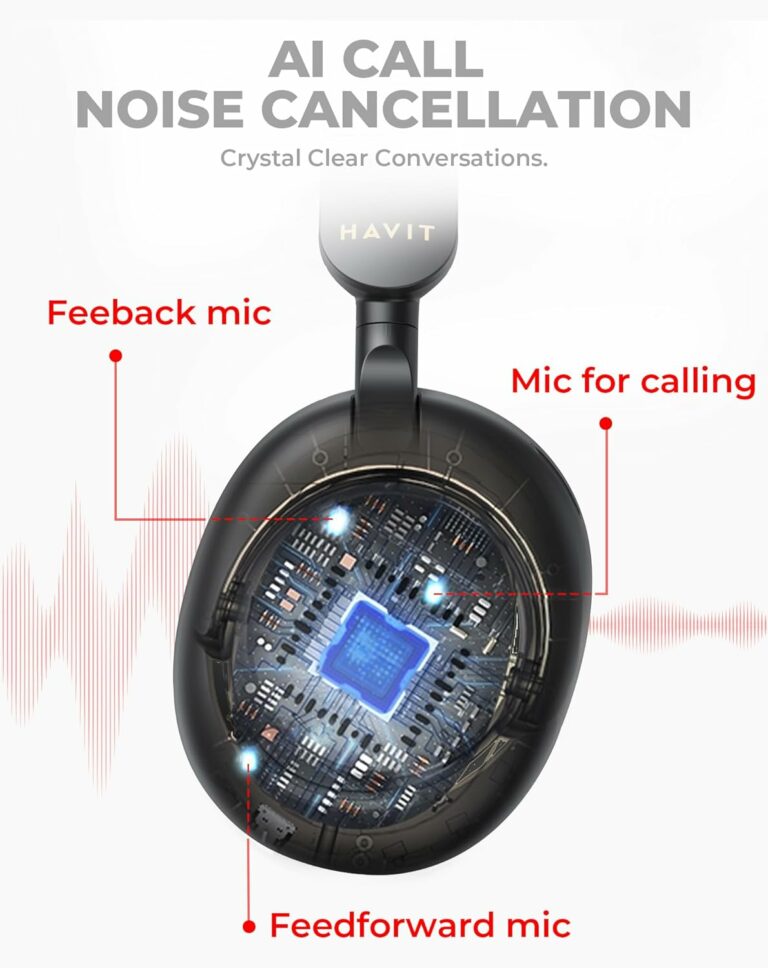 76-Hour Playtime: HAVIT H655BT active noise canceling headphones power multiple long haul flights from a single charge with up to 76 hours of playtime in wireless ANC mode. Increase to 69 hours in standard wireless listening mode.