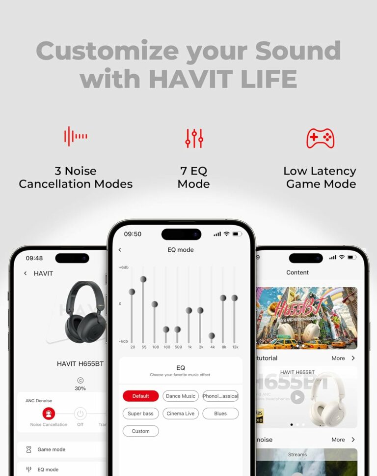 Hi-Res Audio: Our H655 noise cancelling headphones comes with a custom 40mm drive and Hi-res-certified sound quality standards that can reproduce high-resolution audio details and clarity beyond standard cd-roms and lossless formats, make sure you savor the music in richer detail and with a wider dynamic range.