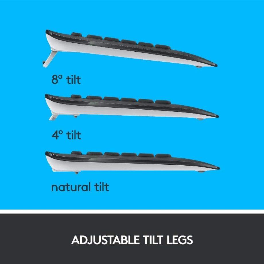 • Precision Typing : An instantly familiar experience, type with ease and comfort on this full-size wireless keyboard. Accuracy and reduced noise, palm rest, spill-resistant design, adjustable tilt legs