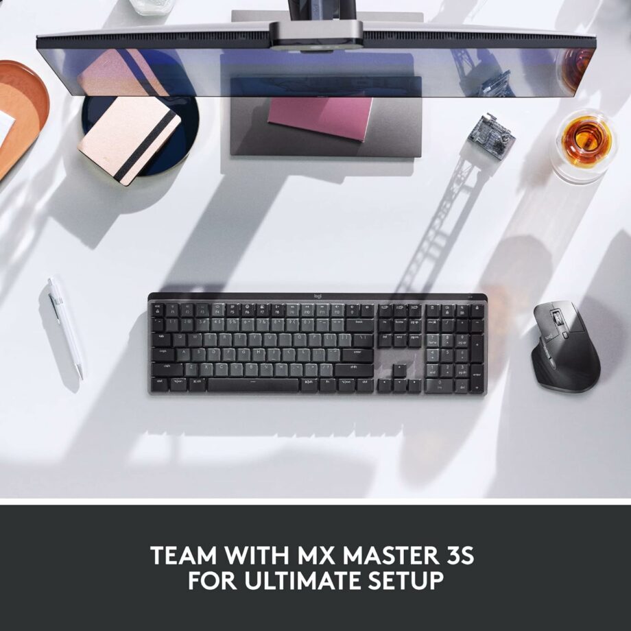 Low-profile mechanical keys are designed for a more natural wrist position, providing effortless precision and longer hours of typing comfort.
