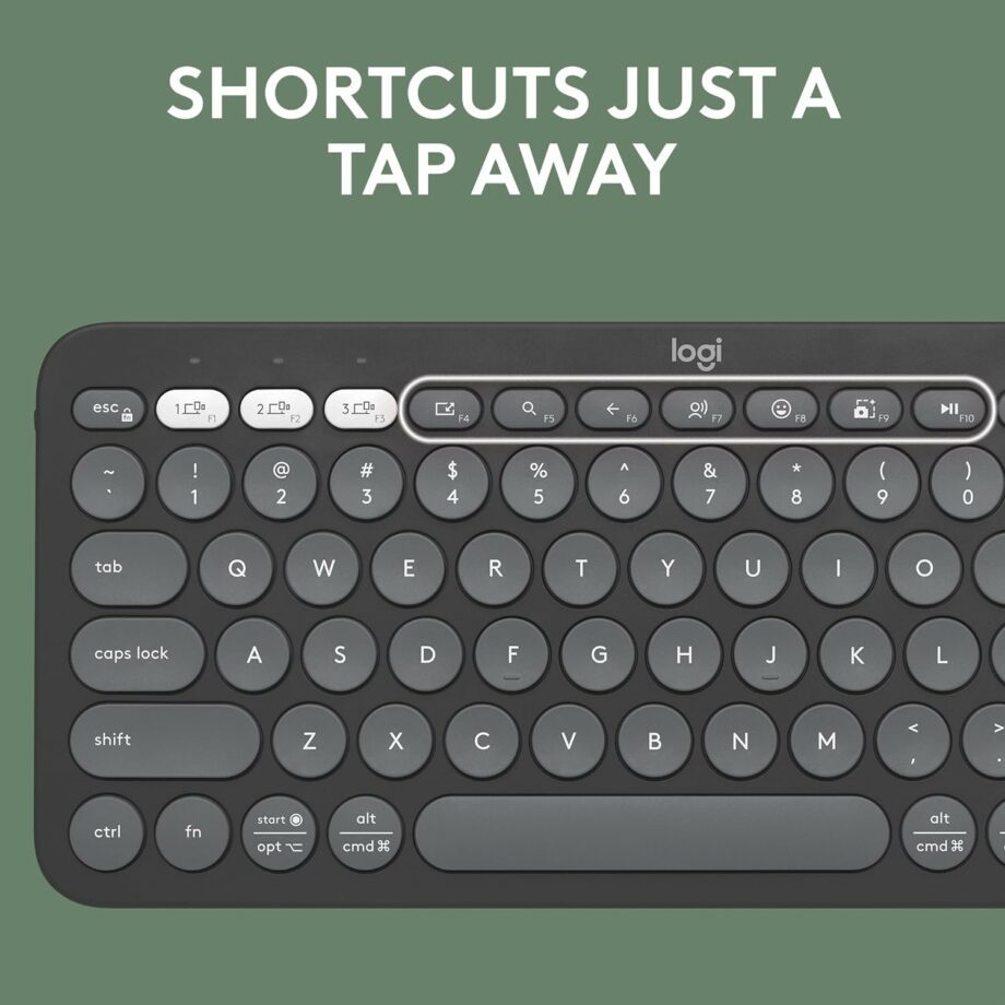 • Save Time: Get instant access to search, screen capture, the emoji menu and more with Fn shortcut keys; personalize the 10 Fn keys with Logi Options+ app (2) so you can do things your way.