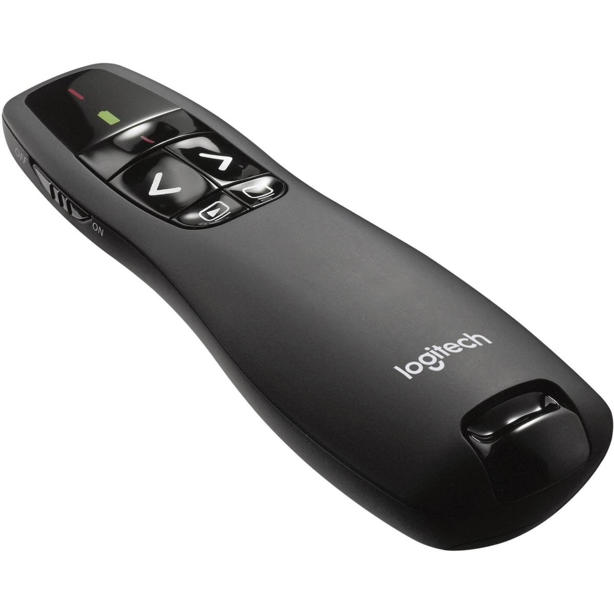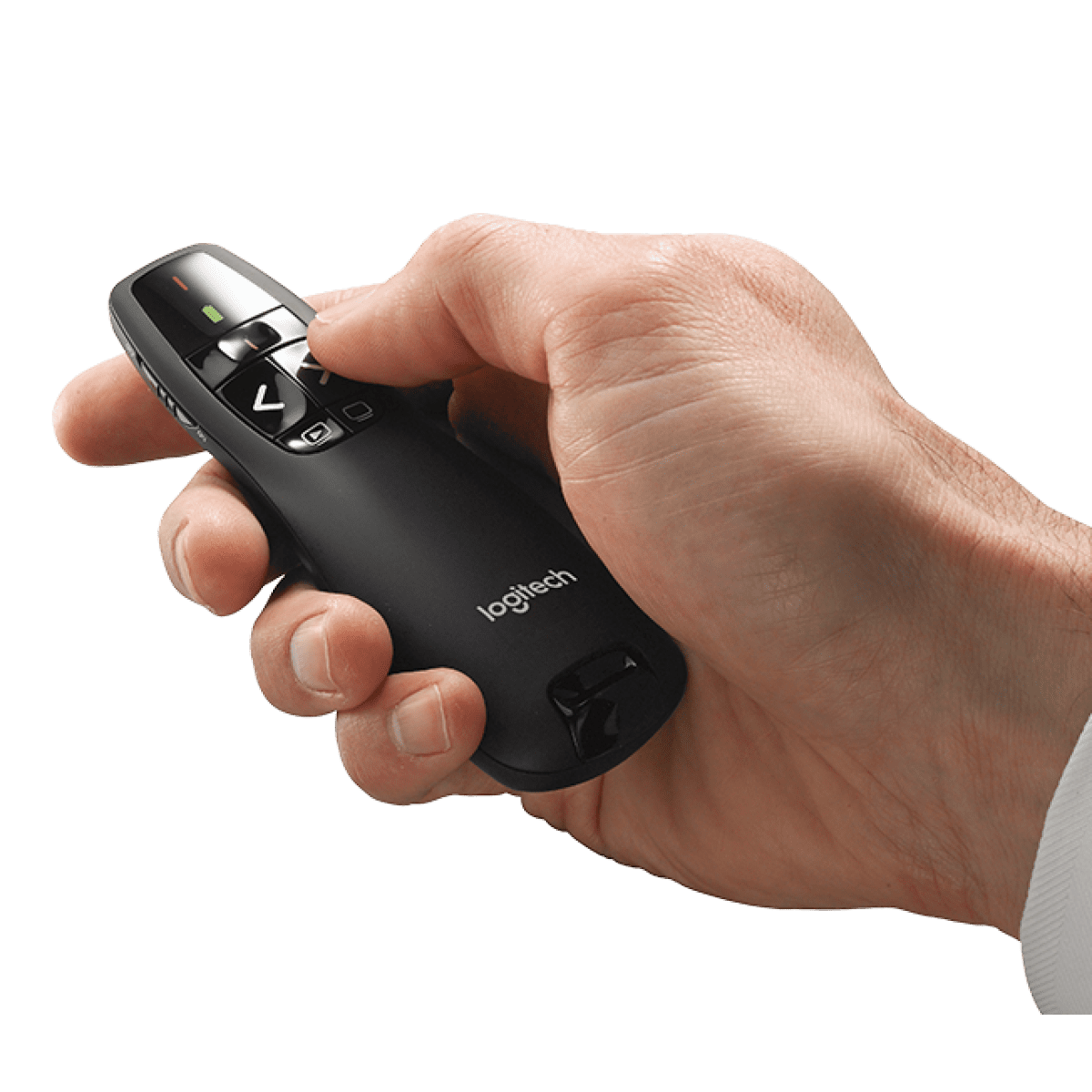Say goodbye to boring presentations. With the Logitech Wireless Presenter R400, it’s easy to turn your presentation into an audience-grabbing showstopper. Everything you need to control your slideshow with confidence is in the palm of your hand. Advance or go back through your slides at the touch of a control key. Focus their full attention on your most important points with the bright red laser pointer. Move around the room and engage your audience with reliable wireless range of up to 50 feet. Whether you’re presenting your master’s thesis in the classroom or your weekly sales update in the conference room, just point, press and prepare to impress.