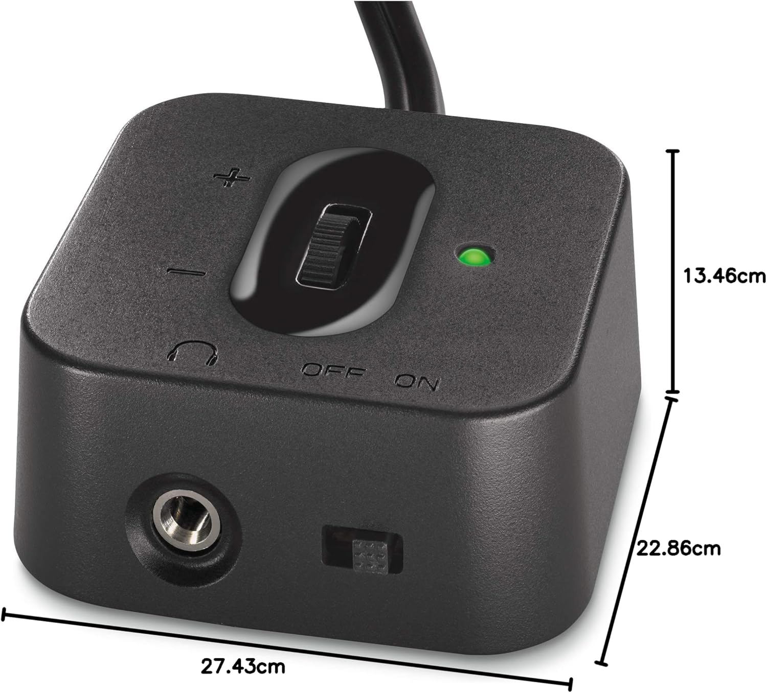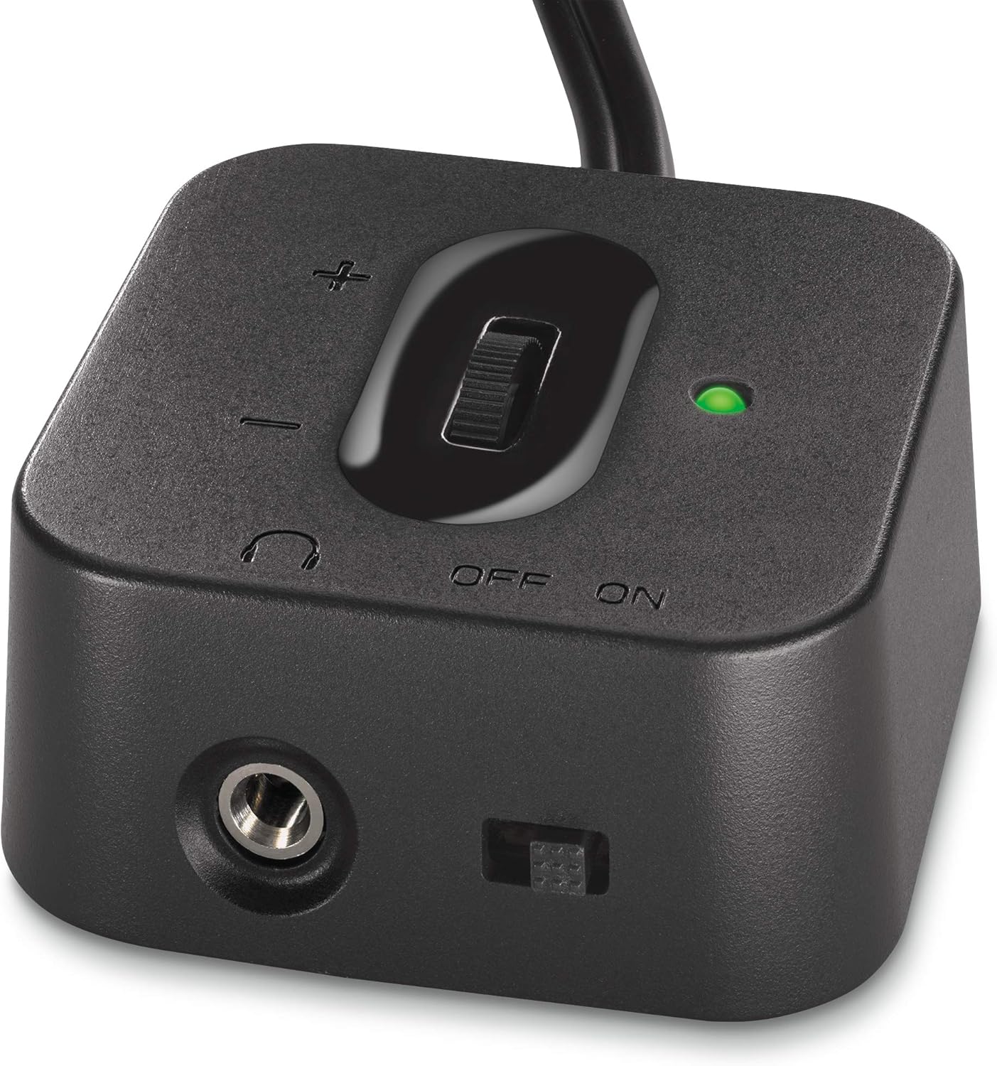 The wired control pod puts power, volume and a headphone jack right at your fingertips.