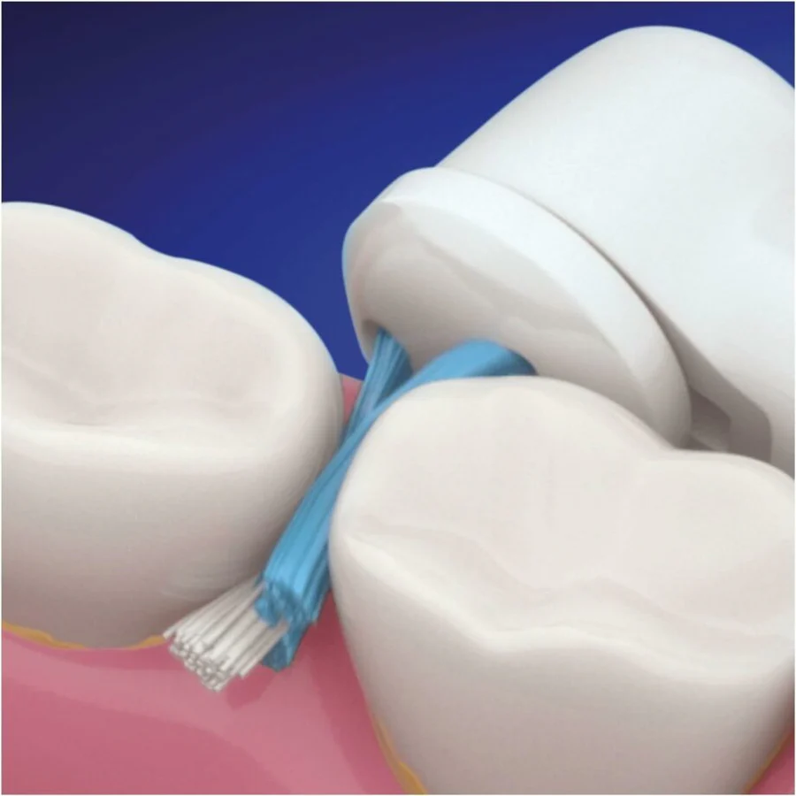 رأس فرشاة الأسنان البديلة Oral-B Interspace مصممة خصيصًا لتنظيف دقيق بين الأسنان وفي المناطق التي تحتاج إلى عناية خاصة، لا سيما حول أجهزة تقويم الأسنان أو تركيبات الأسنان مثل الجسور. تتميز بتقنية فريدة تتذبذب، مما يسمح للشعيرات بالوصول إلى كل سن لتنظيف مذهل، سنًا تلو الآخر. تحتوي المجموعة على: * رأسين لفرشاة الأسنان Interspace