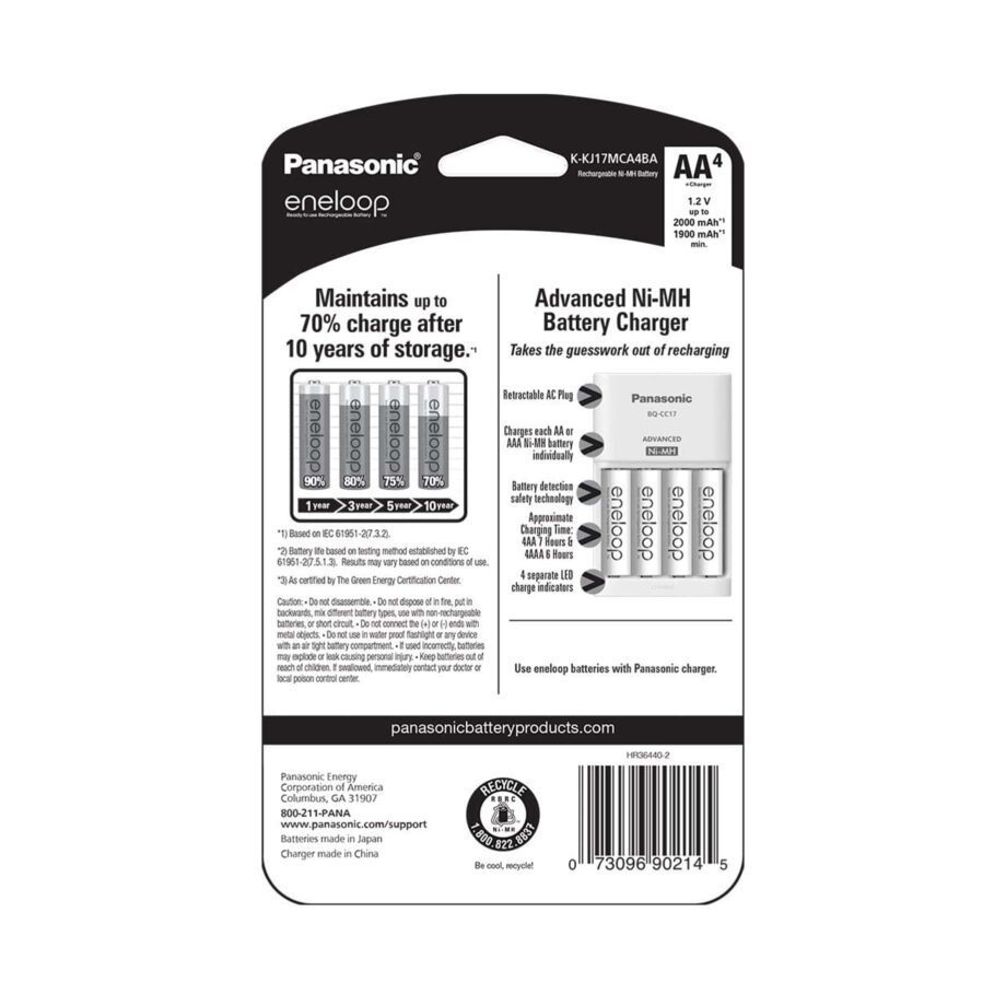 eneloop Ni-MH ‘Low Self Discharge’ batteries utilize Panasonic’s advanced rechargeable cell technology allowing them to be recharged up to 2100 times.** These battery cells are ideal for all household products including flashlights, wireless gaming devices, digital camera flash units, and wireless mouse and keyboards.