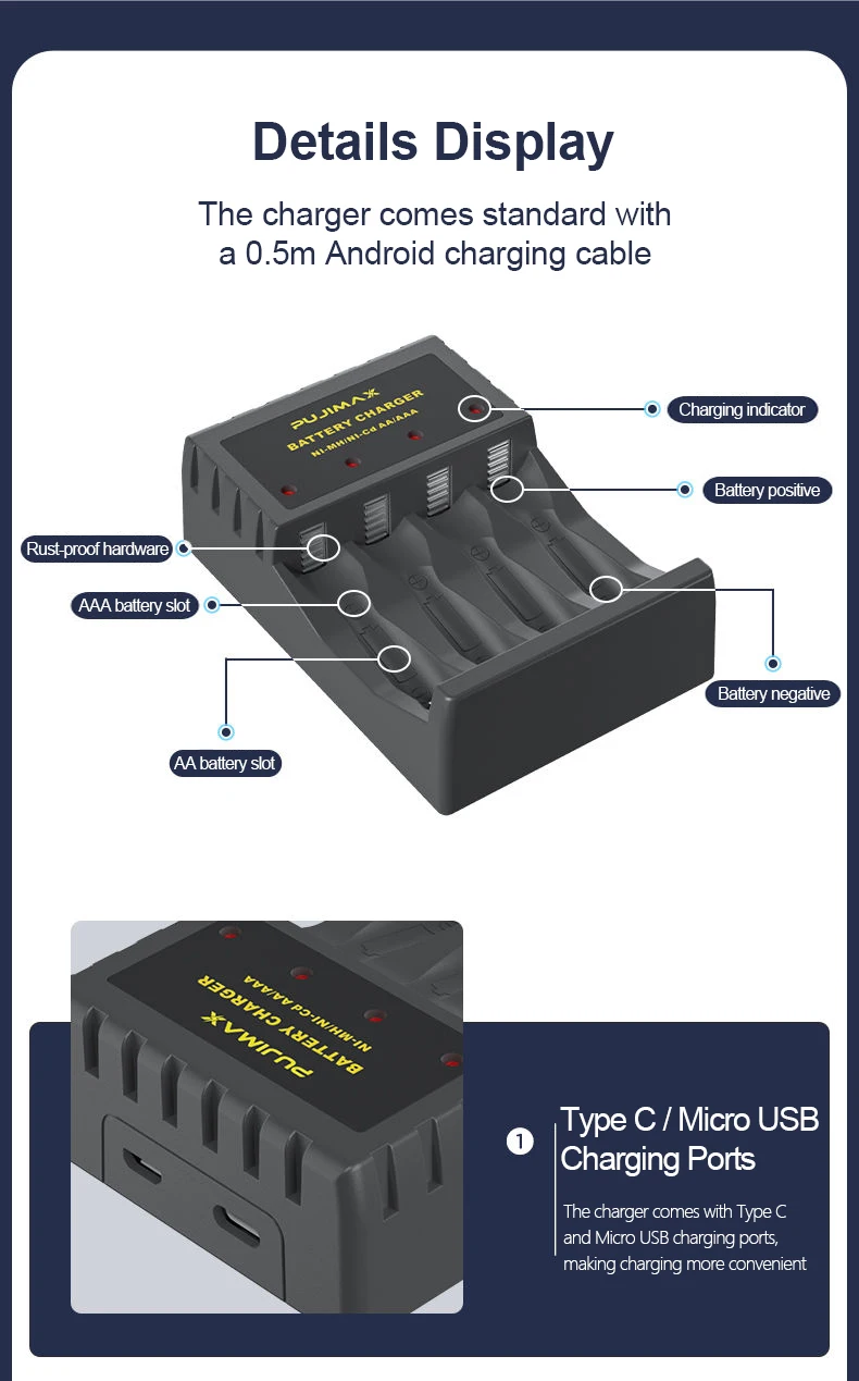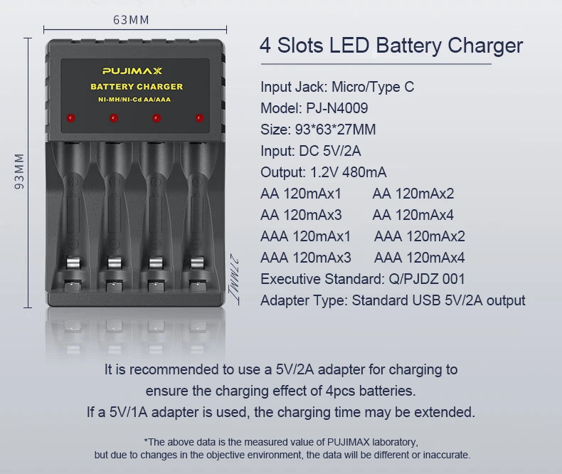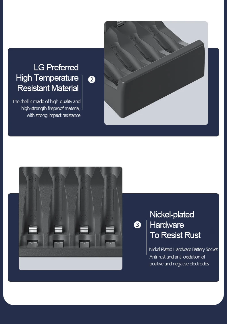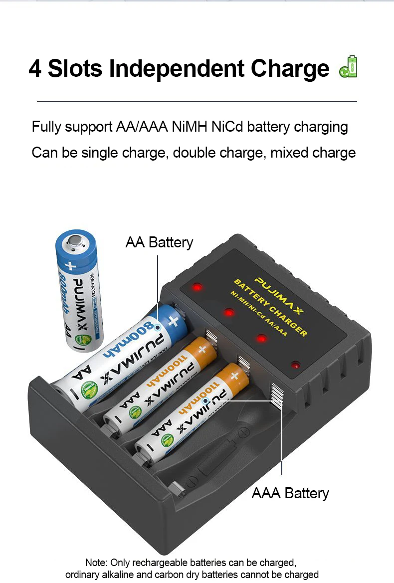 –1.Only suitable for 1.2V AA/AAANi-MH/Ni-Cdrechargeable batteries,Not suitable for normal alkaline or 1.5V batteries