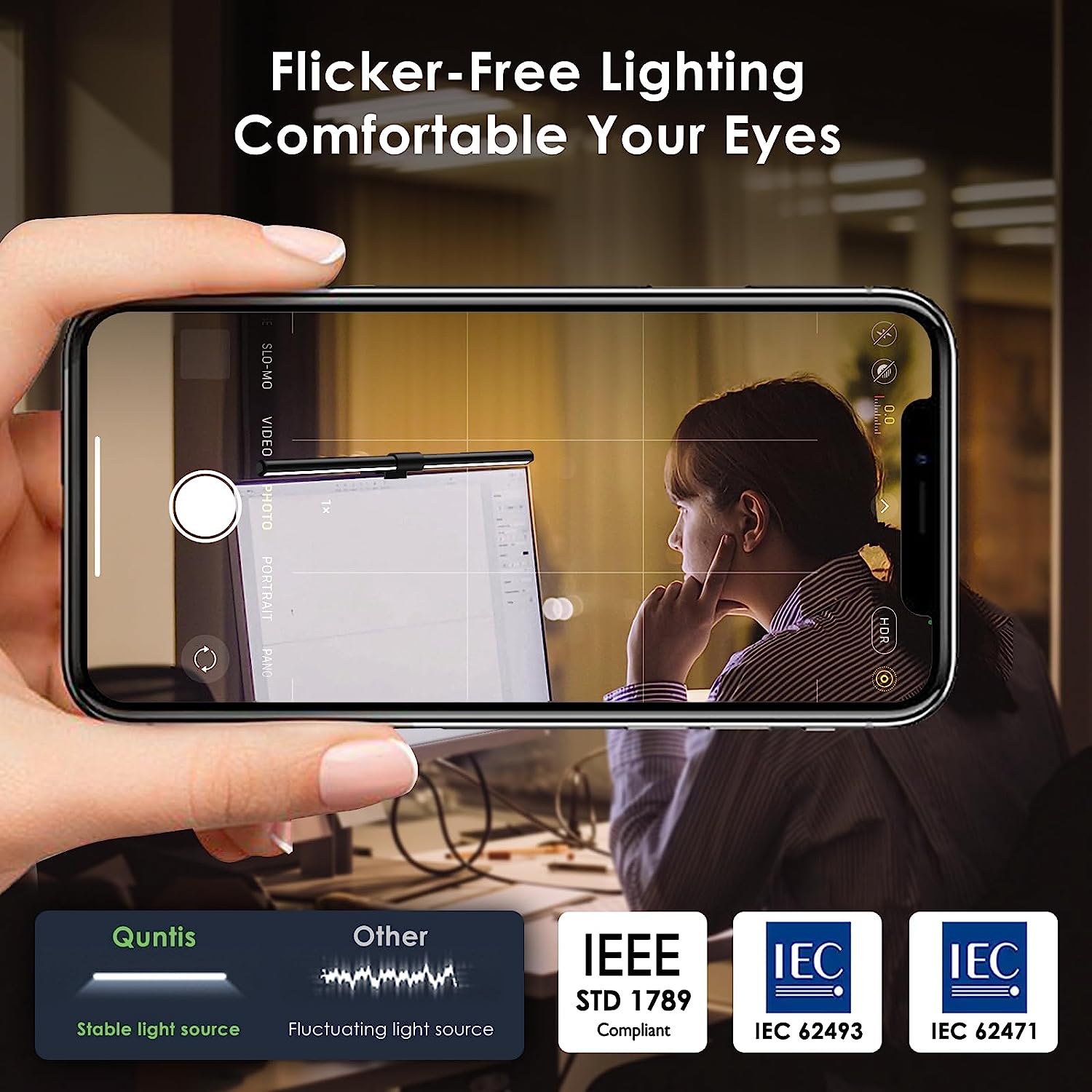 【No Blue Light Hazard & Flicker-Free Lighting】Certified to meet the IEC/TR 62778 and IEC/EN 62471 standards, Quntis monitor light bar effectively eliminates harmful blue light that may affect vision, reducing eye irritation and providing optimal eye protection. Enjoy our flicker-free illumination that provides a stable light source without worrying about eye discomfort. Experience a truly comfortable and eye-friendly illumination with Quntis computer monitor light.