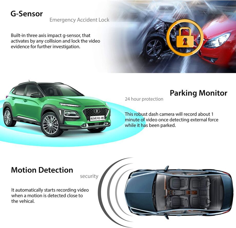 Unlike any other dash cams, ROVE R2-4K has two distinct parking mode features.
