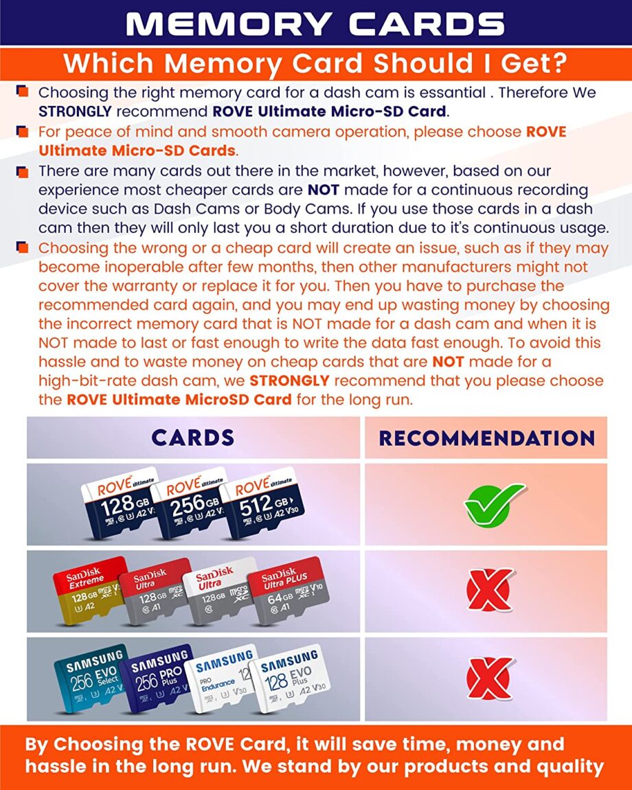 We Recommend: ROVE Ultimate Micro SD Card Class 10, U3 Speed Micro SD Card. ASIN: B0BGVCK7MJ | Link: amazon.com/dp/B0BGVCK7MJ