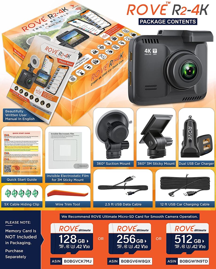We understand how important it is to have a dash cam that can support the largest memory card in the industry. That is why ROVE R2-4K is designed to support up to 512 GB Micro-SD Card.