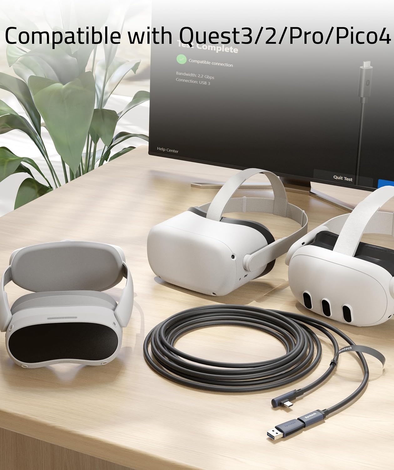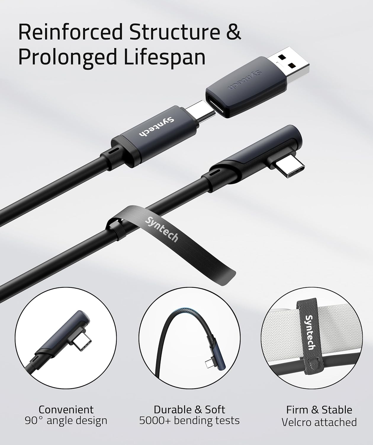 Syntech – Video Cables & Adapters – C101 Link Type-C Cable Compatible with Meta/Oculus Quest 3S/Quest 3/2/Pro/Pico 4/Ultra and PC/SteamVR with USB 3.0 Adapter – 5M Black