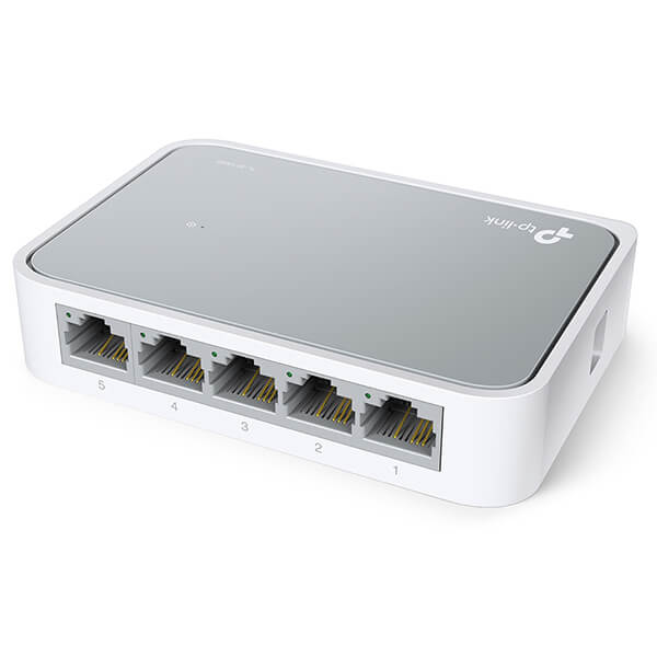 Affordable TP-Link SF1005D 5-Port Desktop Switch with 10/100Mbps speeds — plug-and-play, energy-saving, reliable connectivity for home & small office networks.