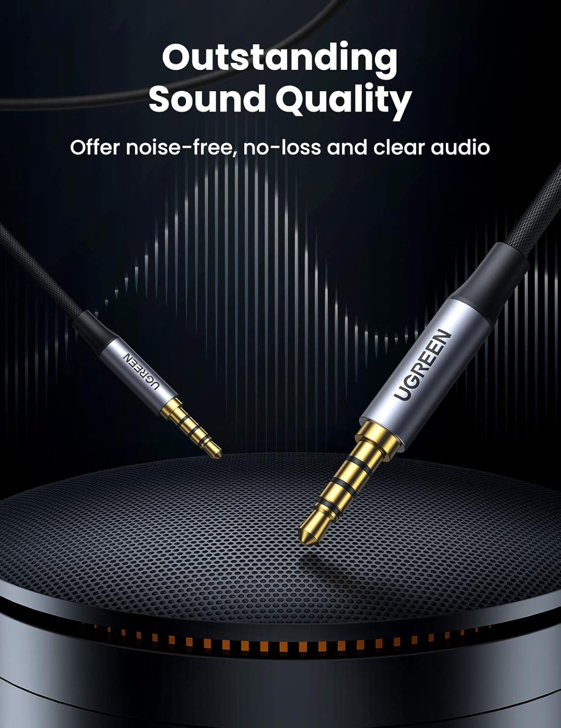 UGREEN Braided 4-Pole 3.5mm Audio Cable Male to Male for Great Audio Enjoyment.