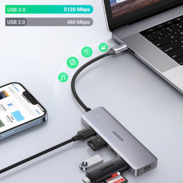 USB C data hub 4 Ports supports super faster data transfer up to 5Gbps – 10X faster than USB 2.0 (480 Mbps), which allows you to transfer HD movies or large files in just seconds.