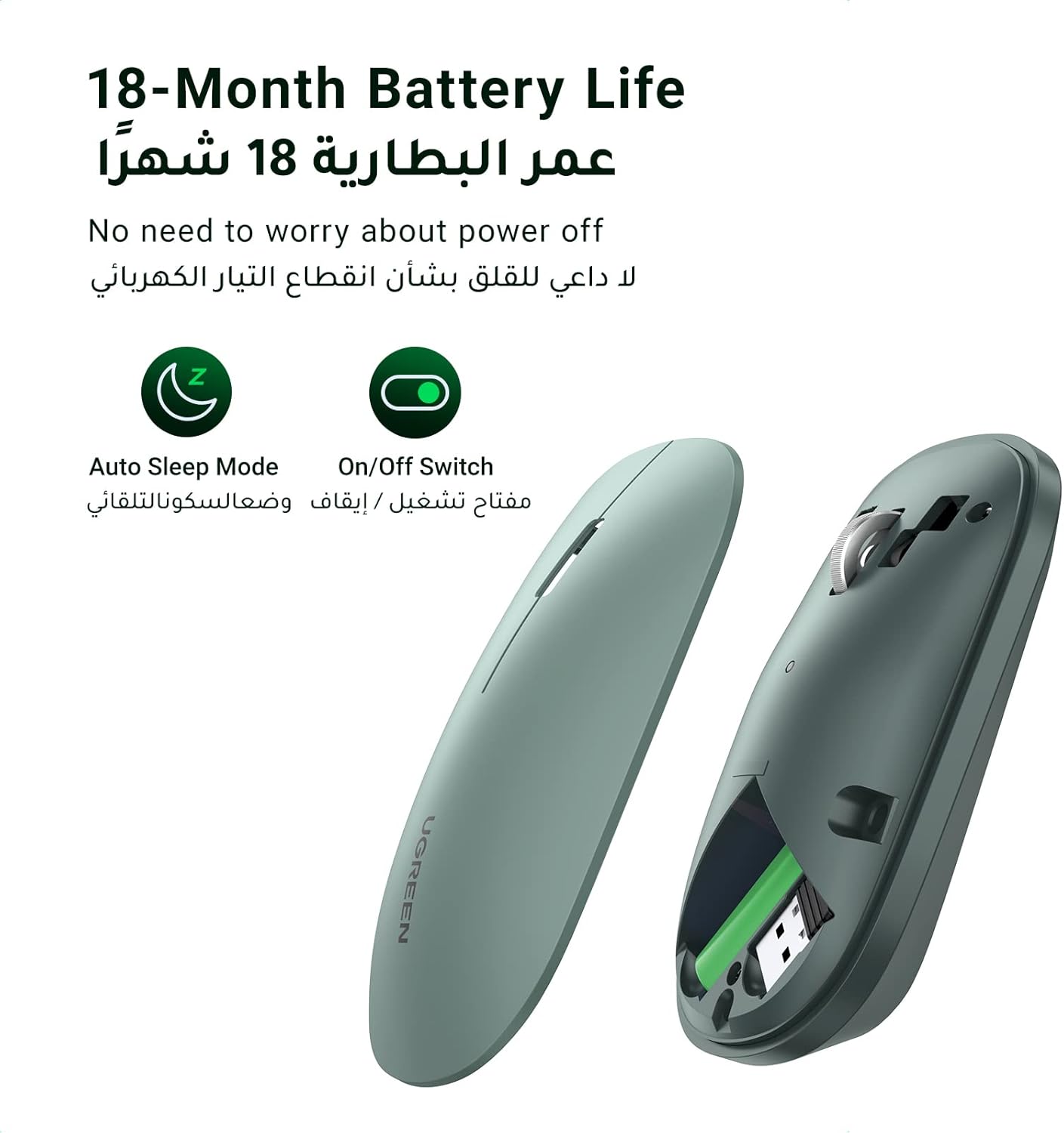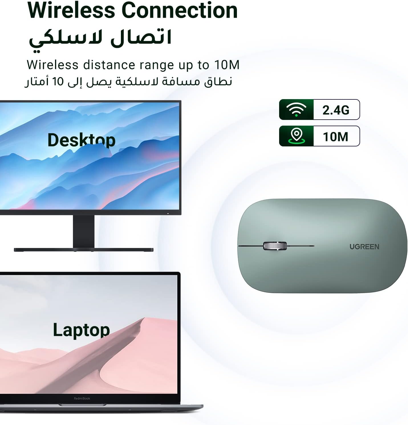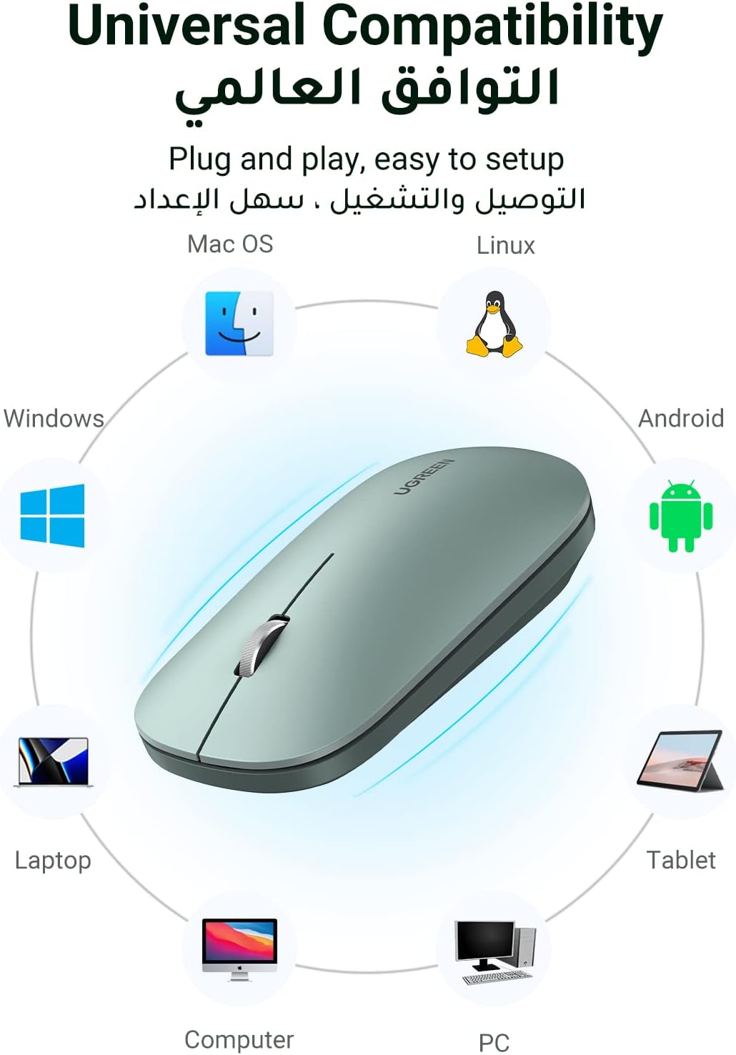 【Slim & Portable 】This UGREEN laptop mouse wireless with ergonomic design and the slim and portable size suitable for different using environments.The perfect streamlined aesthetic design brings a better click experience to you with this portable mouse.