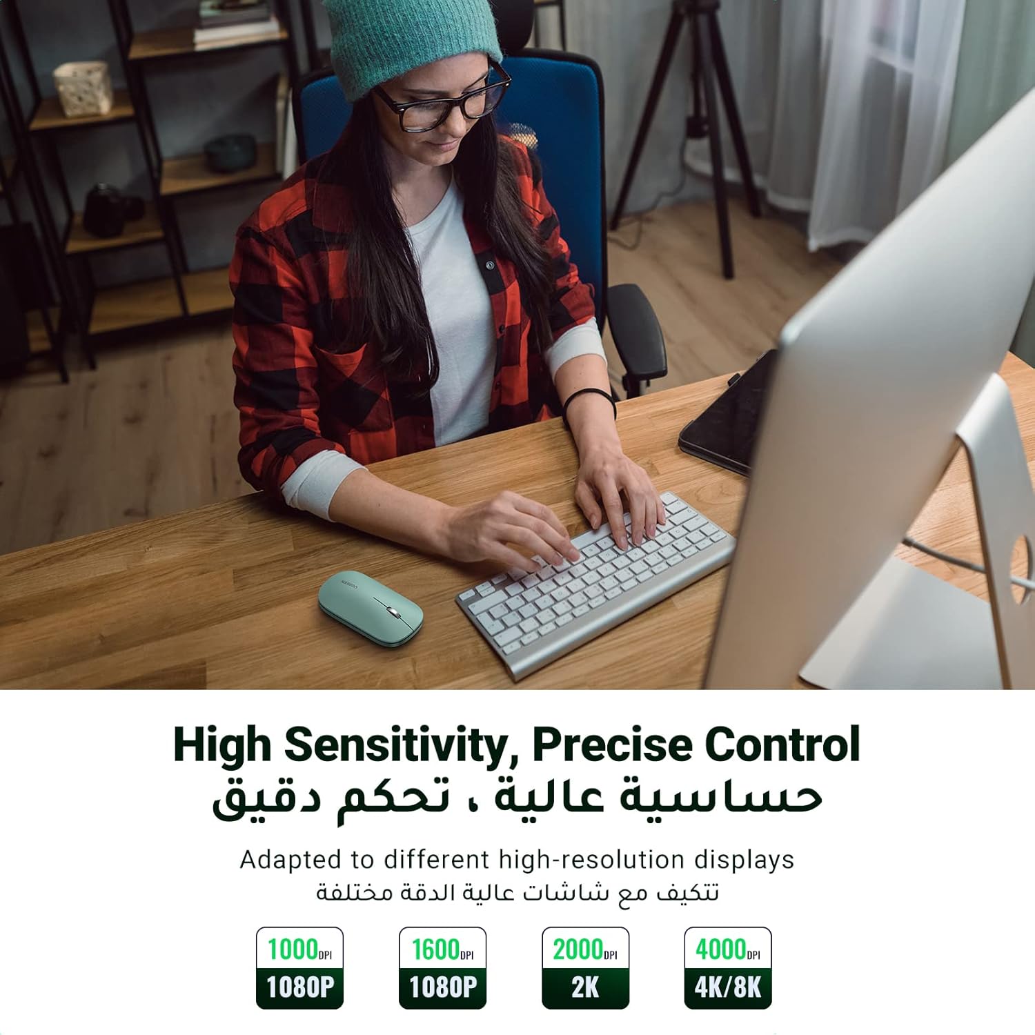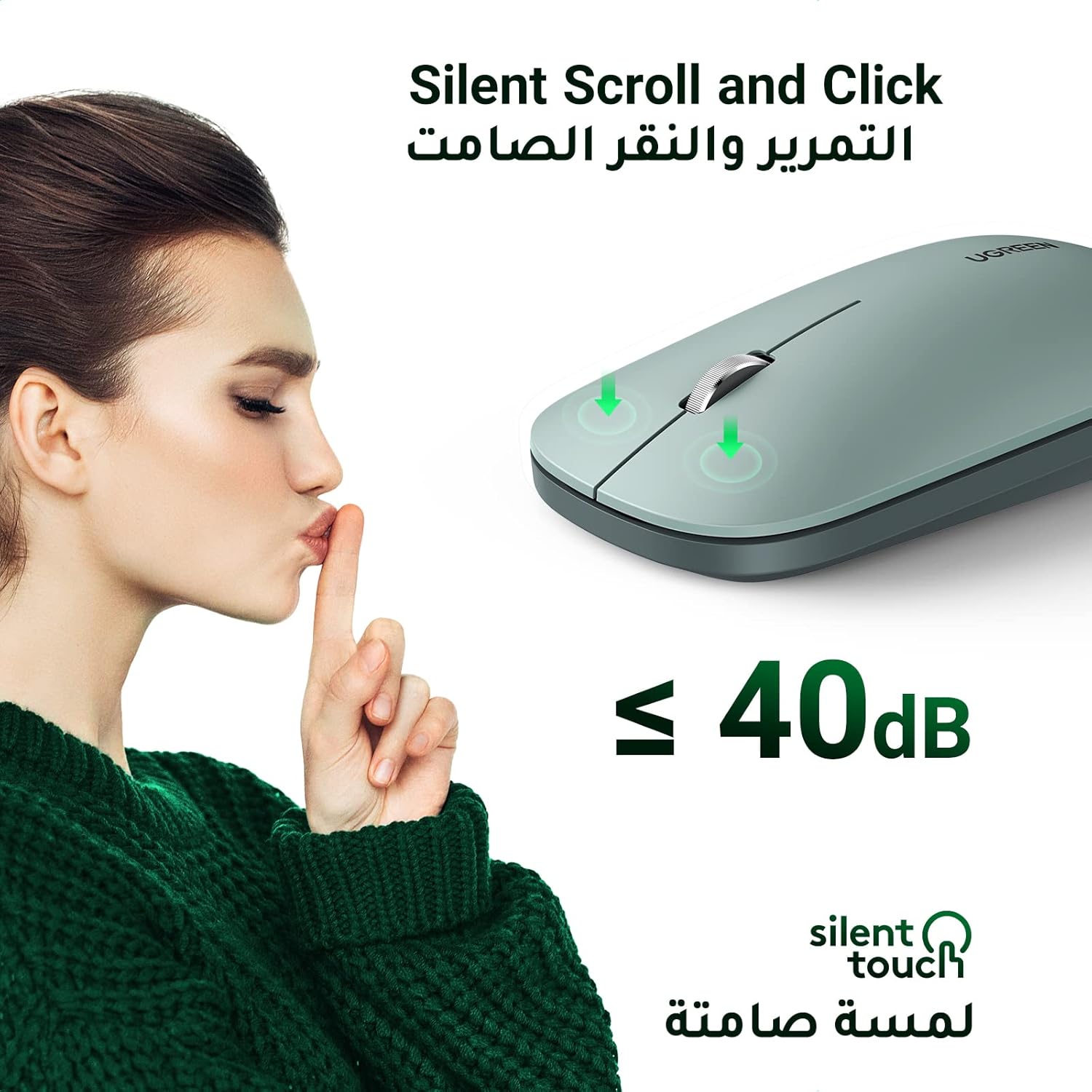 【Silent Design】With the silent design, this UGREEN wireless mouse for laptop reduces 90% noise while using. Don’t worry about disturbing others when clicking this silent mouse in the public area anymore. This slim mouse is an ideal choice for office, conference room, cafe, library, bedroom, helps you concentrate on your work.