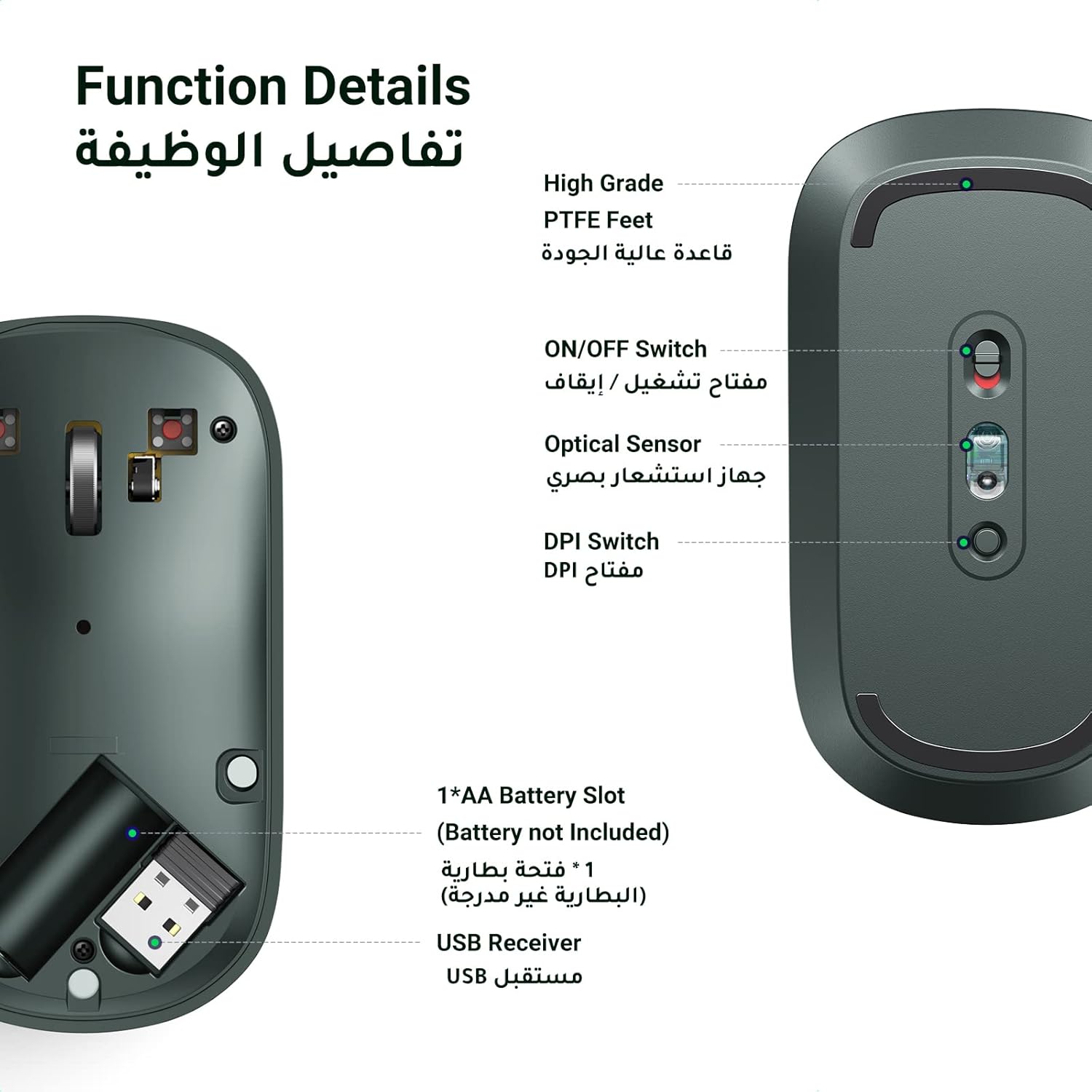 【High Sensitivity, Precise Control】This wireless mouse for laptop & PC supports 4 different DPI adjustments. Locate the cursor precisely and move smoothly. The computer mice for office is easy to meet different office and entertainment scenes and display resolutions.(Battery not included)