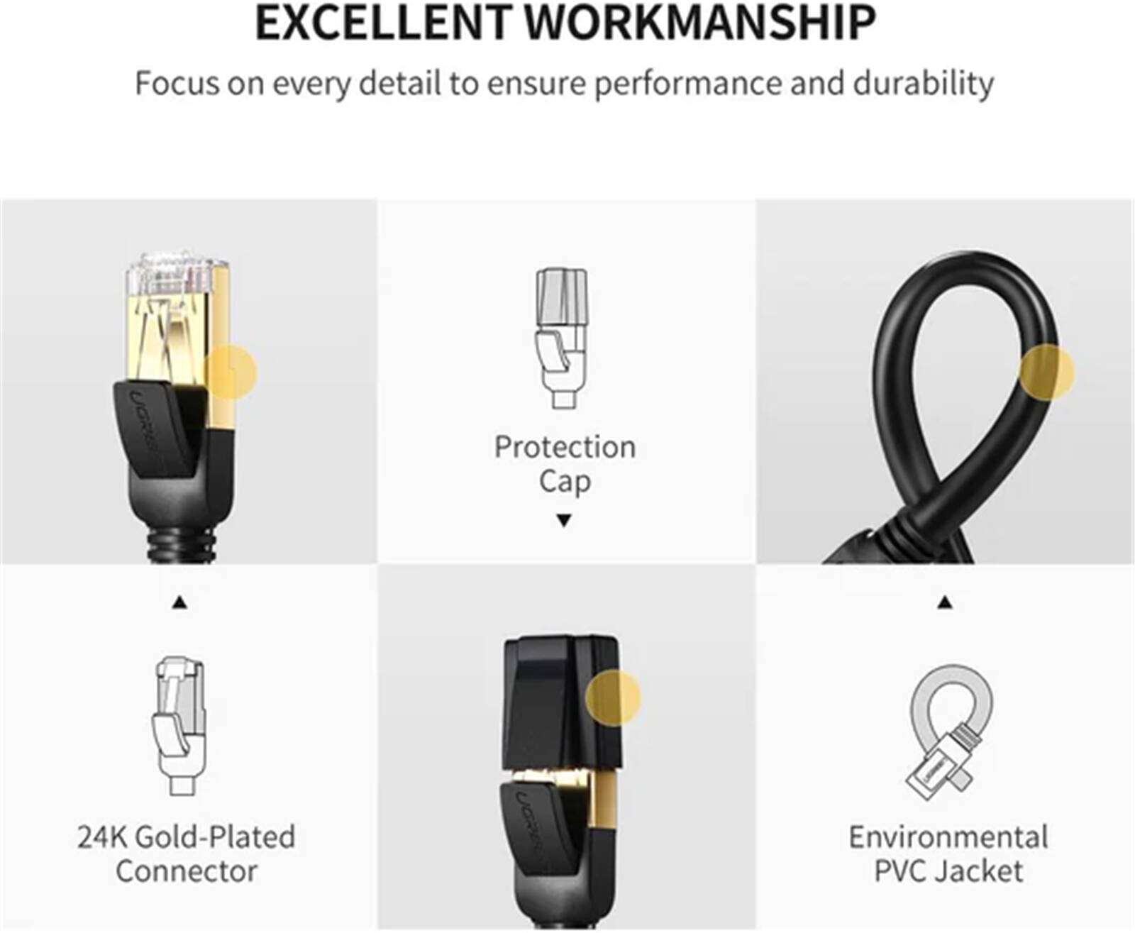 10Gbps High Speed: UGREEN ethernet cable cat7 supports bandwidth up to 600MHz and transmits data at speed up to 10Gbps. No matter when you are surfing the Internet, streaming videos, listening to music or online gaming, there is no hassle of slow network