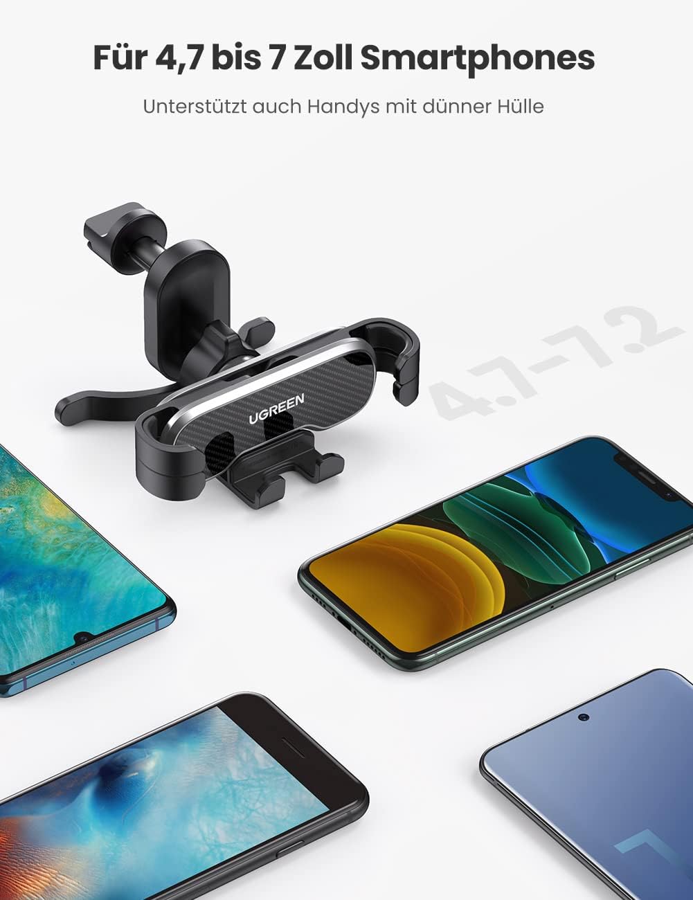 UGREEN Handyhalter Auto ist mit allen 4,7-7 Zoll Handys kompatibel. Auch Ihr Handy mit Hülle kann problemlos eingesteckt werden, solange sie zusammen die maximale Dicke von 12mm nicht überspringen.