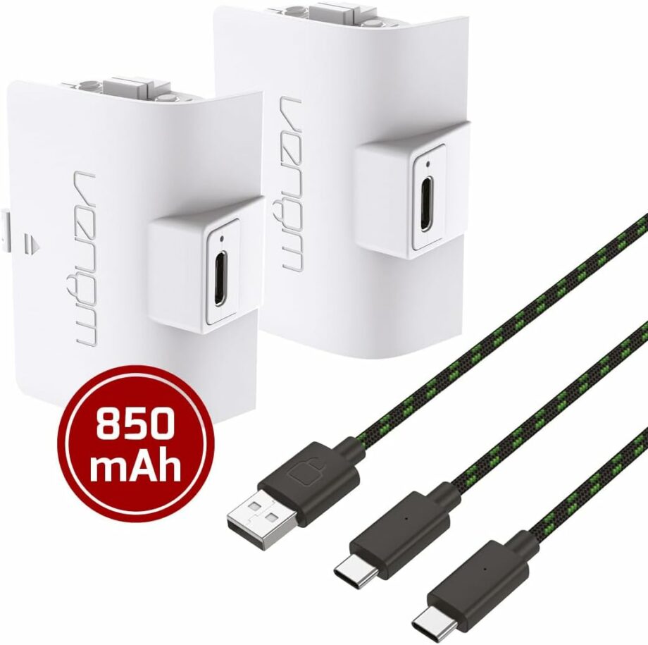 Remove the need to constantly change your controller batteries with expensive disposables. Our handy rechargeable battery packs are made to measure to fit your Xbox Controller and offer hours of gameplay off one full charge. Our money saving twin packs offer 2 x 850mAh rechargeable battery packs as well as a USB charging cable that can charge both battery packs simultaneously. The 3 metre length cable ensures you have full flexibility in where you charge. The battery packs can also be charged whilst placed in the controller allowing you to continue playing whilst power is restored. Available in black or white to match your controller.