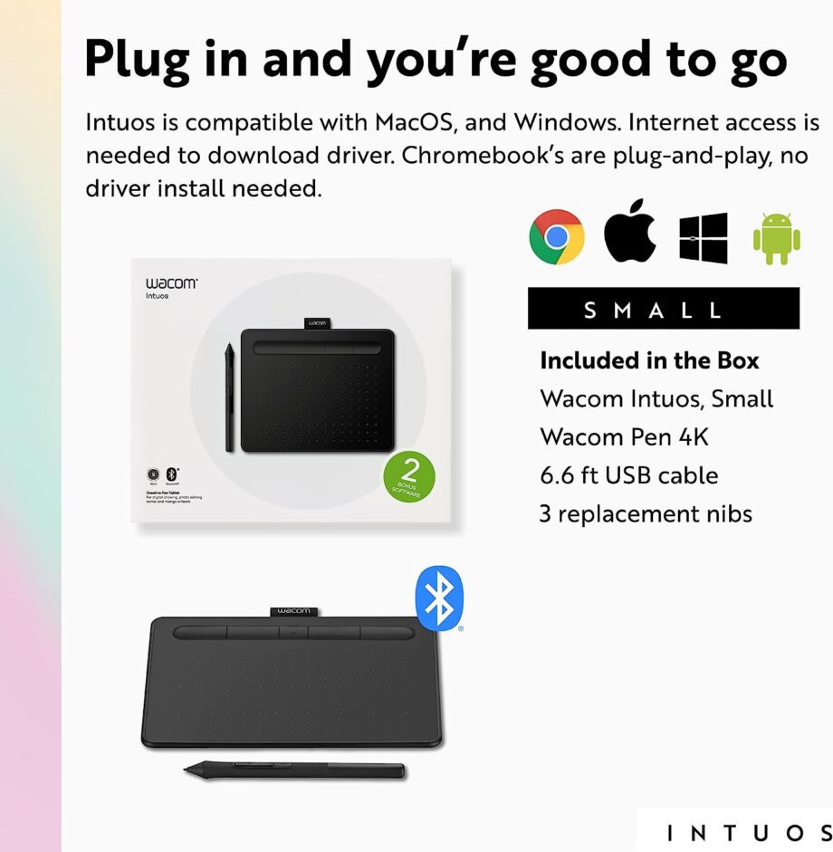 Intuos drawing tablet helps you unlock the ideas in your mind, which are as unique as your signature. This easy-to-use digital pen and tablet are compatible with PC and Mac OS, with plug-in and play for Chromebooks. Easily sketch abstract shapes, annotate assignments and PDFs, write formulas and equations, and express ideas in ways you can’t with a keyboard. Transform the world by bringing your vision to life with a Wacom pen in your hand.