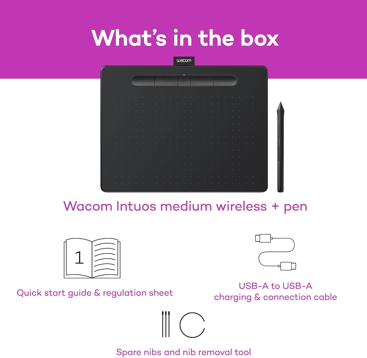 Wacom Intuos Medium Bluetooth Graphics Drawing Tablet, 4 Customizable ExpressKeys, Portable for Teachers, Students and Creators, Compatible with Chromebook Mac OS Android and Windows - Black